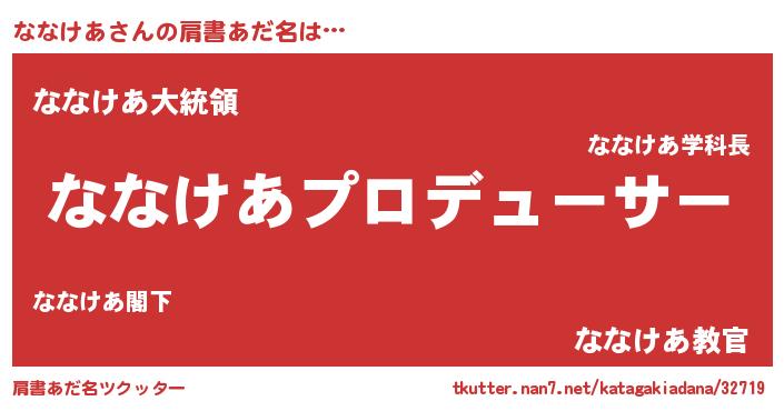 | 男性向けラノベタイトル風あだ名 | 『ななけあに滅ぼされるだけの簡単なお仕事です』 |