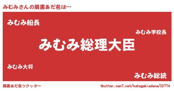 | 女子向けラノベタイトル風あだ名 | 『みむみの雑貨屋さん』『みむみ恋絵巻』 |