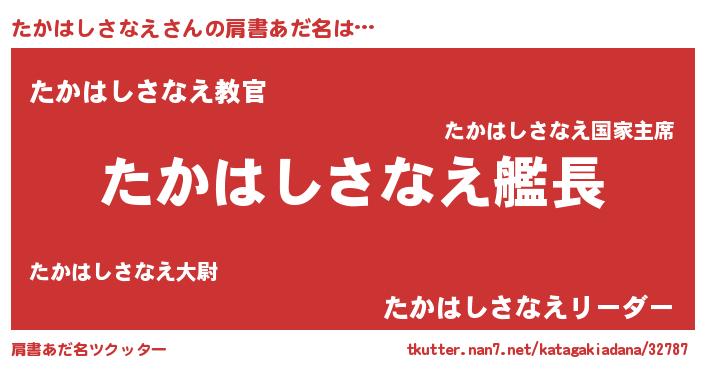 | 男性向けラノベタイトル風あだ名 | 『うちのたかはしさなえが世界を掌握している!』 |