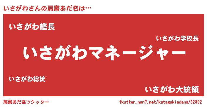 | 意味不明あだ名 | 『いさがわフォーエバー』『自称いさがわ』 |