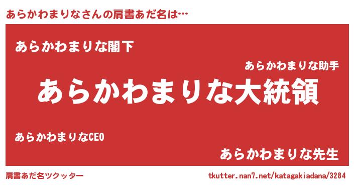 | 胡散臭い通販商品みたいなあだ名 | 『世界が平和になる高級そうな壺…その名も「あらかわまりな」』 |