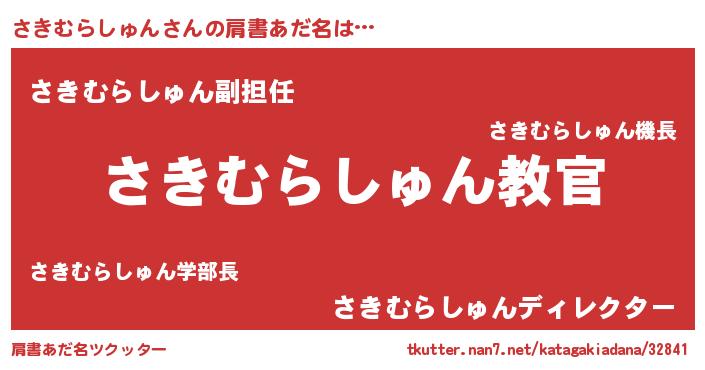 | ヒーロー風カッコイイあだ名 | 『仮面サキダー』『ネオサキムラシュン』 |