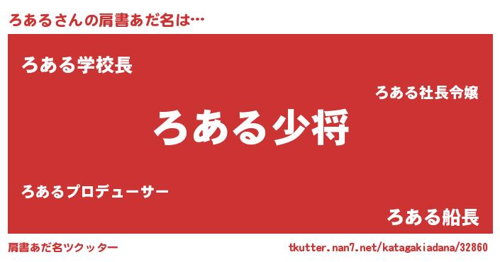 | ヘコむあだ名 | 『ろあもー』『ろある(爆)』『豆乳』 |