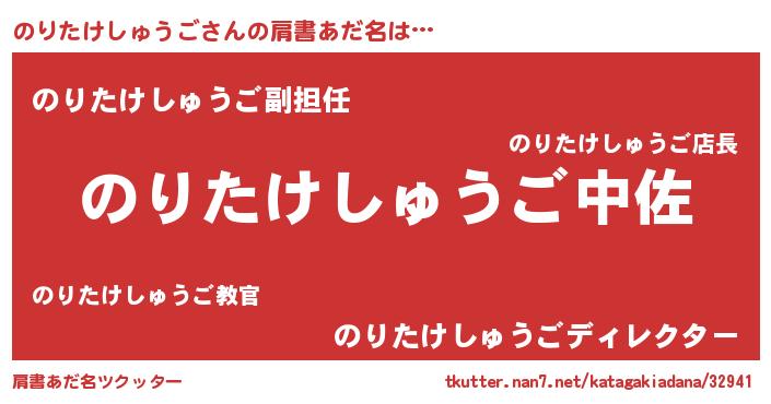 | 男性向けラノベタイトル風あだ名 | 『転生したらのりたけしゅうごだった件』 |