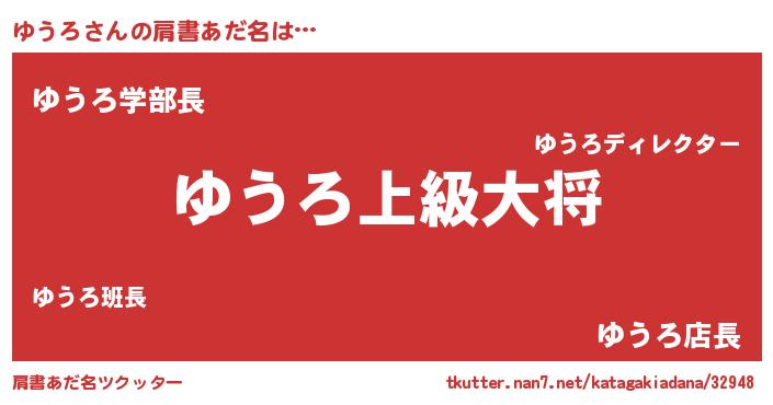 | 女子向けラノベタイトル風あだ名 | 『ゆうろの玉の輿計画!』『ゆうろ恋絵巻』 |