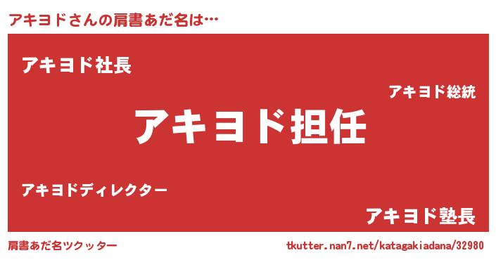 | 意味不明あだ名 | 『永久保存アキヨド』『ペロリンアキヨド』 |