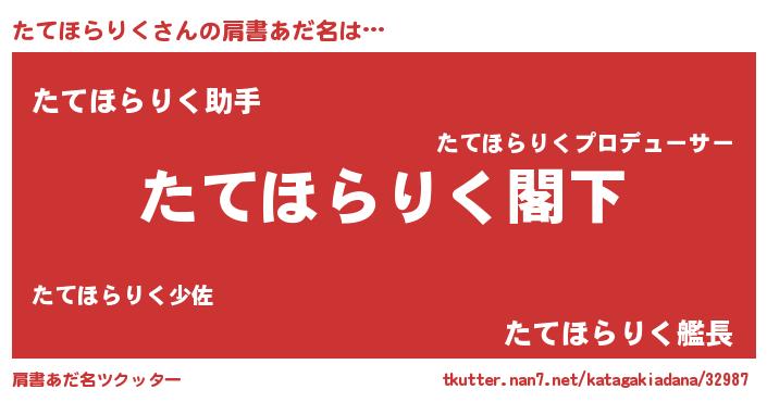 | 意味不明あだ名 | 『自称たてほらりく』 |