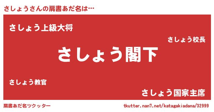 | 男性向けラノベタイトル風あだ名 | 『Re:さしょうから始める異世界生活』 |