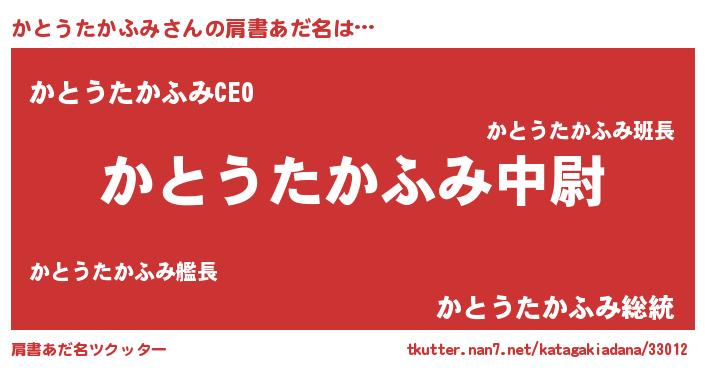 | 胡散臭い通販商品みたいなあだ名 | 『必ず成功する水晶球…その名も「かとうたかふみ」』 |