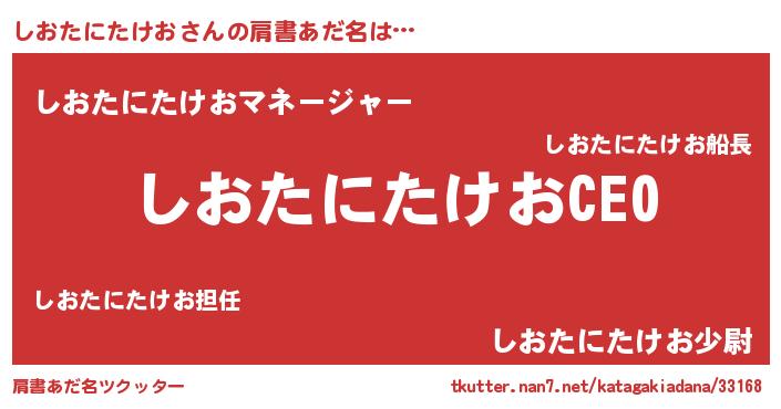 | ヒーロー風カッコイイあだ名 | 『スーパーシオタニタケオ』 |
