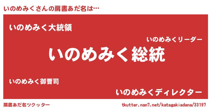 | ヒーロー風カッコイイあだ名 | 『最強戦士イノメミク』『魔戒騎士イノ』 |