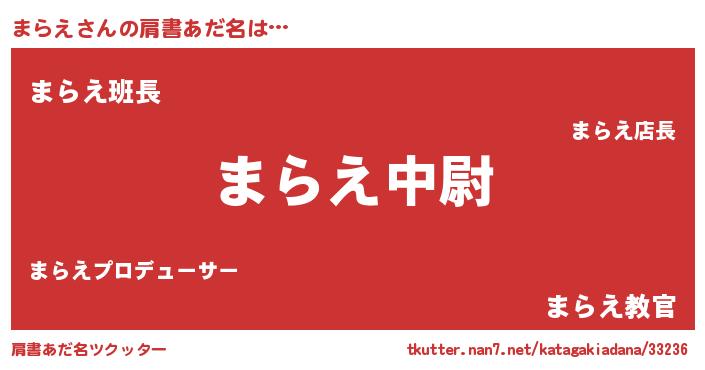| 男性向けラノベタイトル風あだ名 | 『転生したらまらえだった件』 |