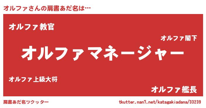 | 男性向けラノベタイトル風あだ名 | 『オルファに滅ぼされるだけの簡単なお仕事です』 |