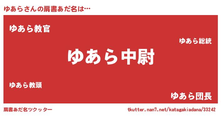 | 男性向けラノベタイトル風あだ名 | 『ゆあら~年齢イコール彼女いない歴の魔法使い~』 |
