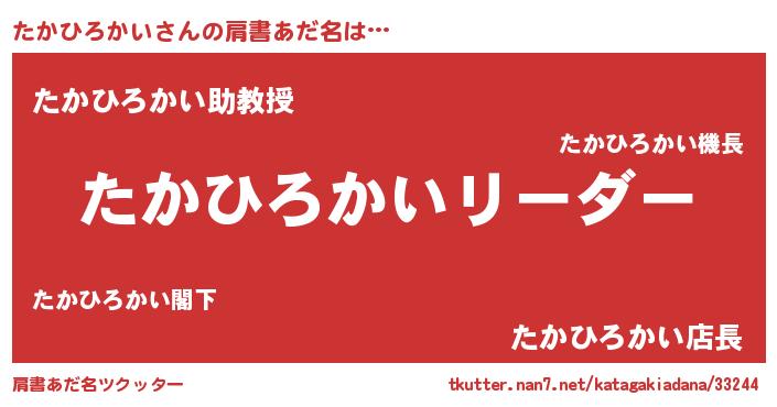 | 女子向けラノベタイトル風あだ名 | 『たかひろかいの卵を拾いまして』 |