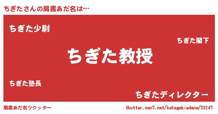 | ヒーロー風カッコイイあだ名 | 『正義の使者ちぎた』『最強戦士チギタ』 |