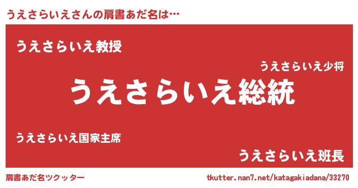 | 意味不明あだ名 | 『自称うえさらいえ』 |