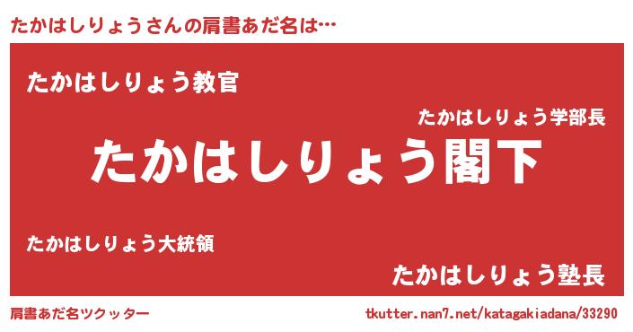 | 意味不明あだ名 | 『自称たかはしりょう』 |