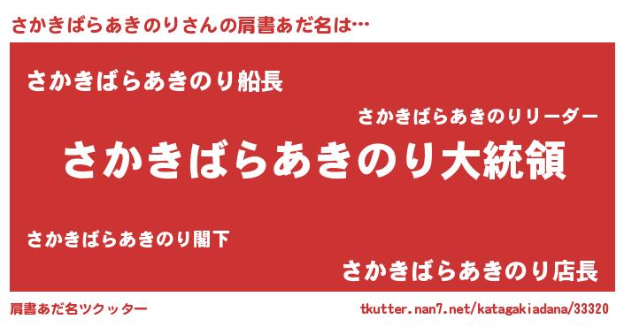 | ファンタジー風あだ名 | 『エターナルサカキバラアキノリー』 |