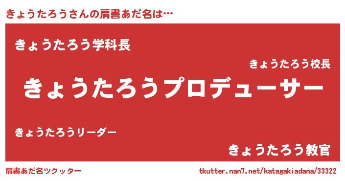 | 男性向けラノベタイトル風あだ名 | 『はたらくきょうたろうさま!』 |