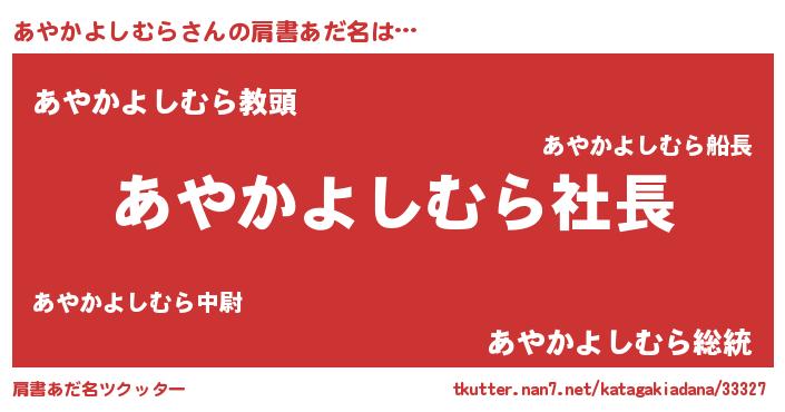 | ヒーロー風カッコイイあだ名 | 『スーパーアヤカヨシムラ』 |