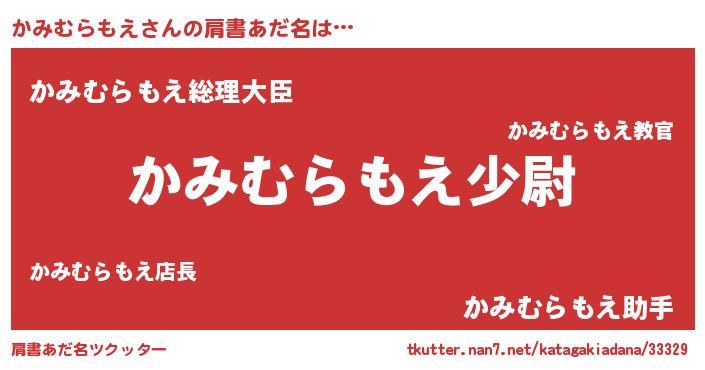 | 女子向けラノベタイトル風あだ名 | 『かみむらもえの玉の輿計画!』 |