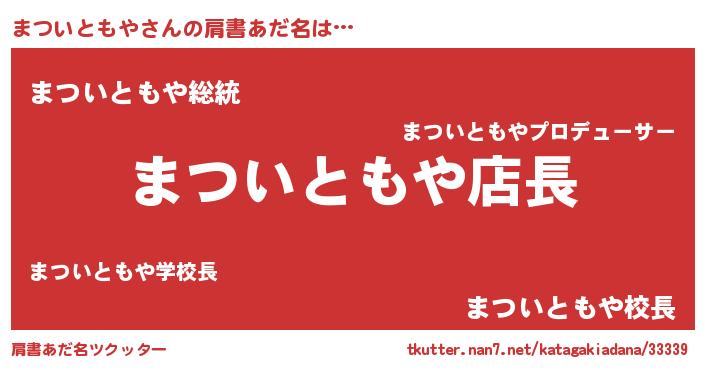 | ヒーロー風カッコイイあだ名 | 『スーパーマツイトモヤ』『仮面マツダー』 |