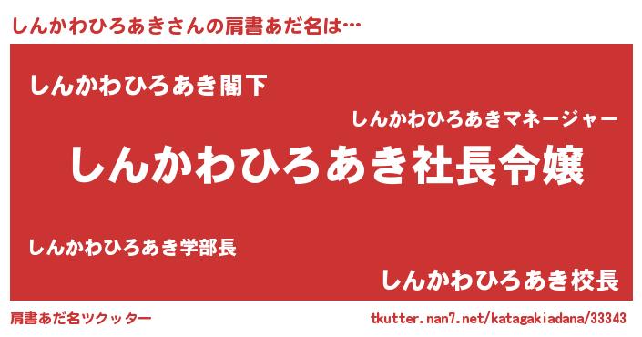 | ヒーロー風カッコイイあだ名 | 『スーパーシンカワヒロアキ』 |