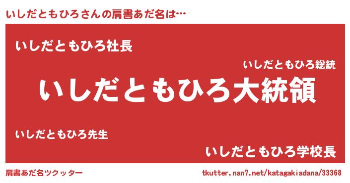 | 男性向けラノベタイトル風あだ名 | 『やはりいしだともひろの青春ラブコメはまちがっている 』 |