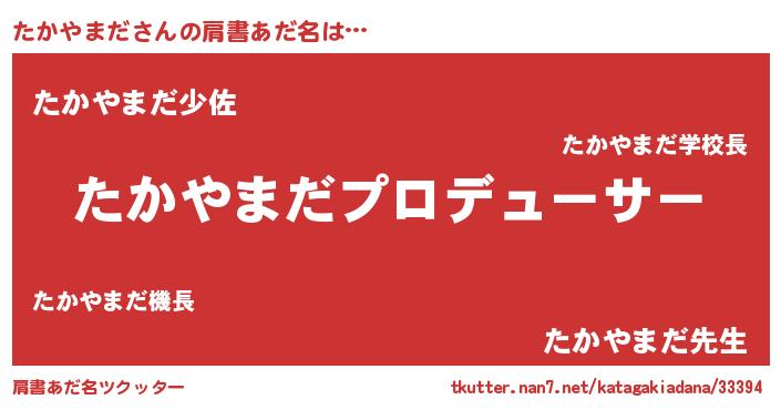 | 男性向けラノベタイトル風あだ名 | 『たかやまだに滅ぼされるだけの簡単なお仕事です』 |