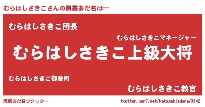 | ポケモン風あだ名 | 『ムラキング』『ヒムラハシサキコ』 |