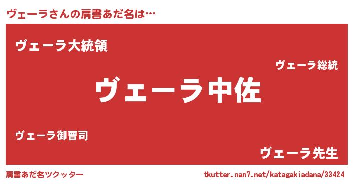 | ヘコむあだ名 | 『豆乳』『ヴェーラ(笑)』『ヴェにー』 |