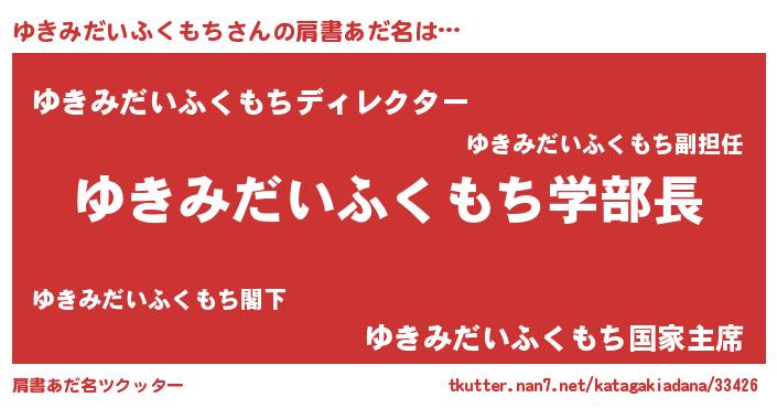 | 男性向けラノベタイトル風あだ名 | 『ノーゲーム・ノーユキミダイフクモチ』 |