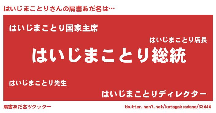 | 女子向けラノベタイトル風あだ名 | 『はいじまことりなんてお断りですっ。』 |