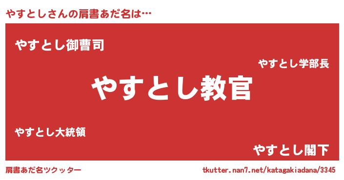 | 意味不明あだ名 | 『住所不定無職やすとし(74歳)』 |