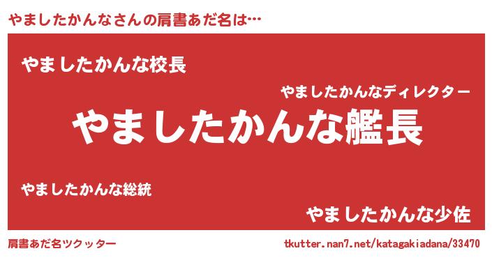 | 男性向けラノベタイトル風あだ名 | 『うちのやましたかんなが世界を掌握している!』 |