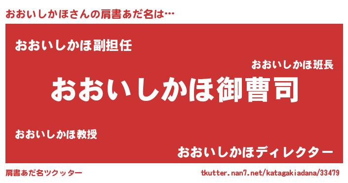 | 男性向けラノベタイトル風あだ名 | 『オオイシカホアートオンライン』 |
