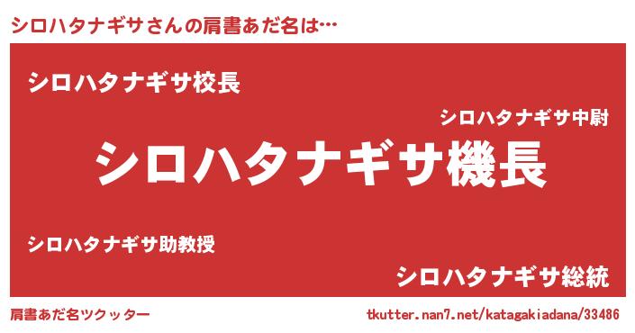| 欧米人風あだ名 | 『シロハタナギサ・ステッグマイヤー』 |