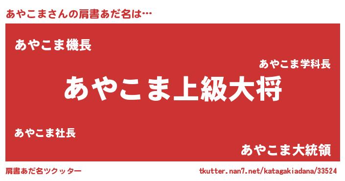 | ヒーロー風カッコイイあだ名 | 『ウルトラあやこまマン』『ネオアヤコマ』 |