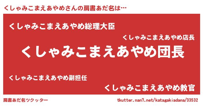 | 意味不明あだ名 | 『とにかく怪しいくしゃみこまえあやめ』 |