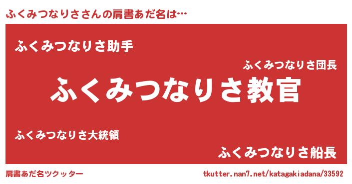 | 男性向けラノベタイトル風あだ名 | 『魔弾の王とふくみつなりさ』 |