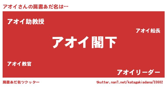 | 欧米人風あだ名 | 『ケンブリッジアオイ』『ダニエルアオイ』 |