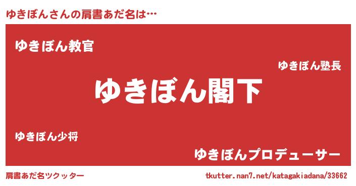 | 男性向けラノベタイトル風あだ名 | 『Re:ゆきぼんから始める異世界生活』 |