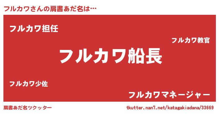 | ヒーロー風カッコイイあだ名 | 『ネオフルカワ』『仮面フルダー』 |