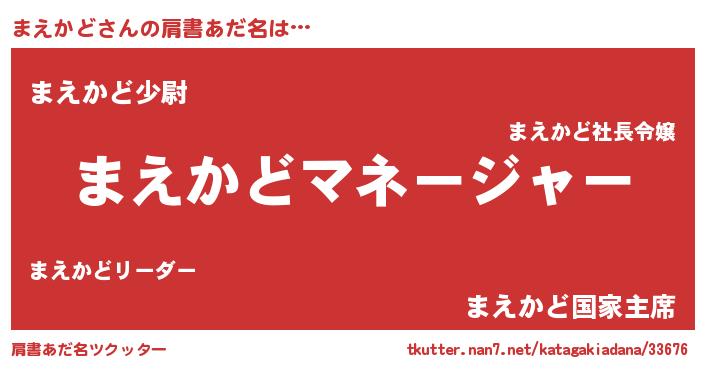 | 男性向けラノベタイトル風あだ名 | 『まえかどに滅ぼされるだけの簡単なお仕事です』 |