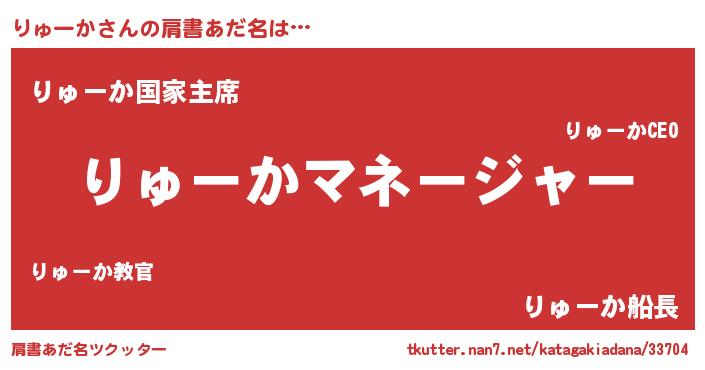 | 男性向けラノベタイトル風あだ名 | 『はたらくりゅーかさま!』 |