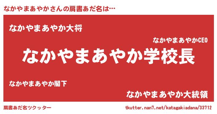 | 男性向けラノベタイトル風あだ名 | 『おまえをオタクにしてやるから、俺をなかやまあやかにしてくれ! 』 |
