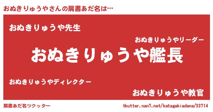 | 意味不明あだ名 | 『永久保存おぬきりゅうや』 |