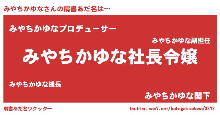 | 胡散臭い通販商品みたいなあだ名 | 『必ず成功する霊験あらたかなお札…その名も「みやちかゆな」』 |