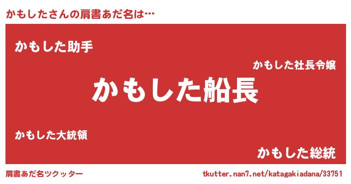 | 男性向けラノベタイトル風あだ名 | 『緋弾のカモシタ』 |